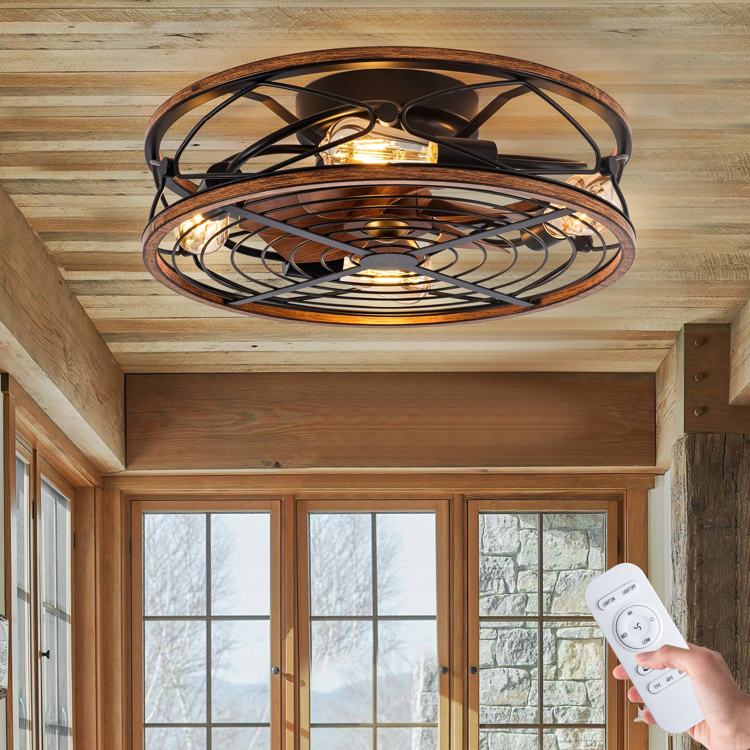 TIFEROR 20'' Caged Ceiling Fans With Lights and Remote -3 Speeds Reversible Motor, Includes 5 E26 bulbs